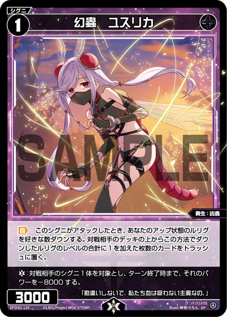 【自】:このシグニがアタックしたとき、あなたのアップ状態のルリグを好きな数ダウンする。