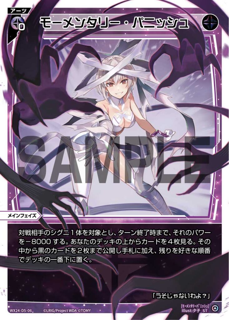 対戦相手のシグニ1体を対象とし、ターン終了時まで、それのパワーを-8000する。
