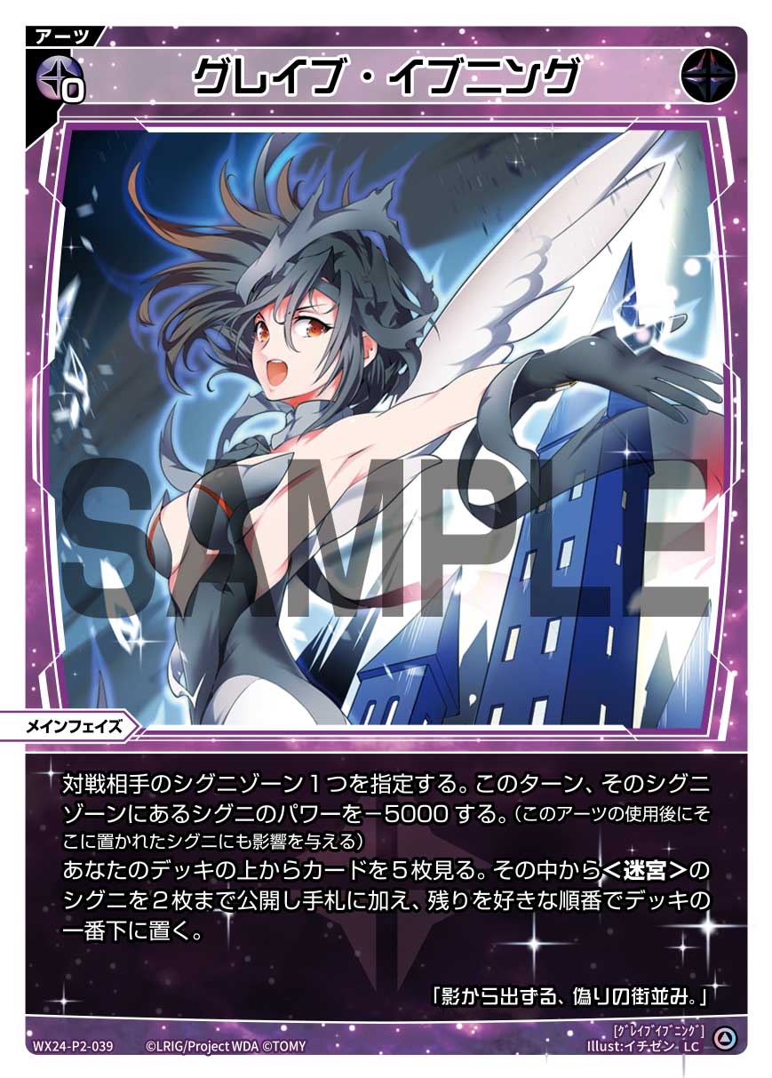 その中から<迷宮>のシグニを2枚まで公開し手札に加え、残りを好きな順番でデッキの一番下に置く。