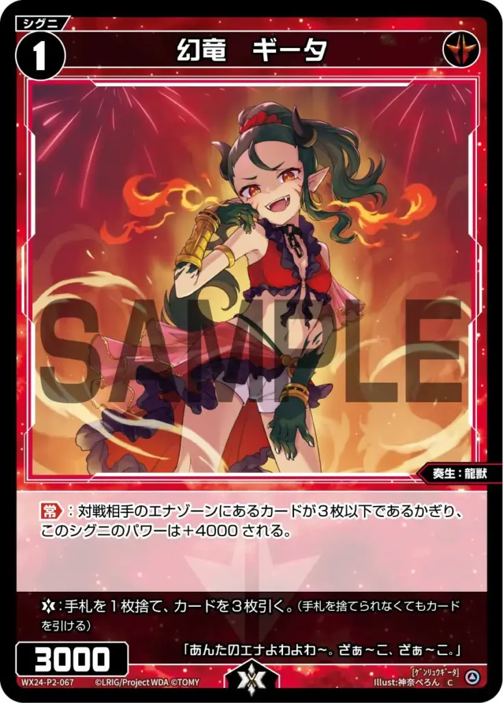 ライフバースト:手札を1枚捨て、カードを3枚引く。(手札を捨てられなくてもカードを引ける)