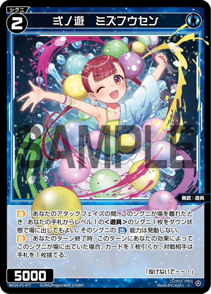 【自】:あなたのアタックフェイズの間、このシグニが場を離れたとき、あなたの手札からレベル1の<遊具>のシグニ1枚をダウン状態で場に出してもよい。そのシグニの【出】能力は発動しない。