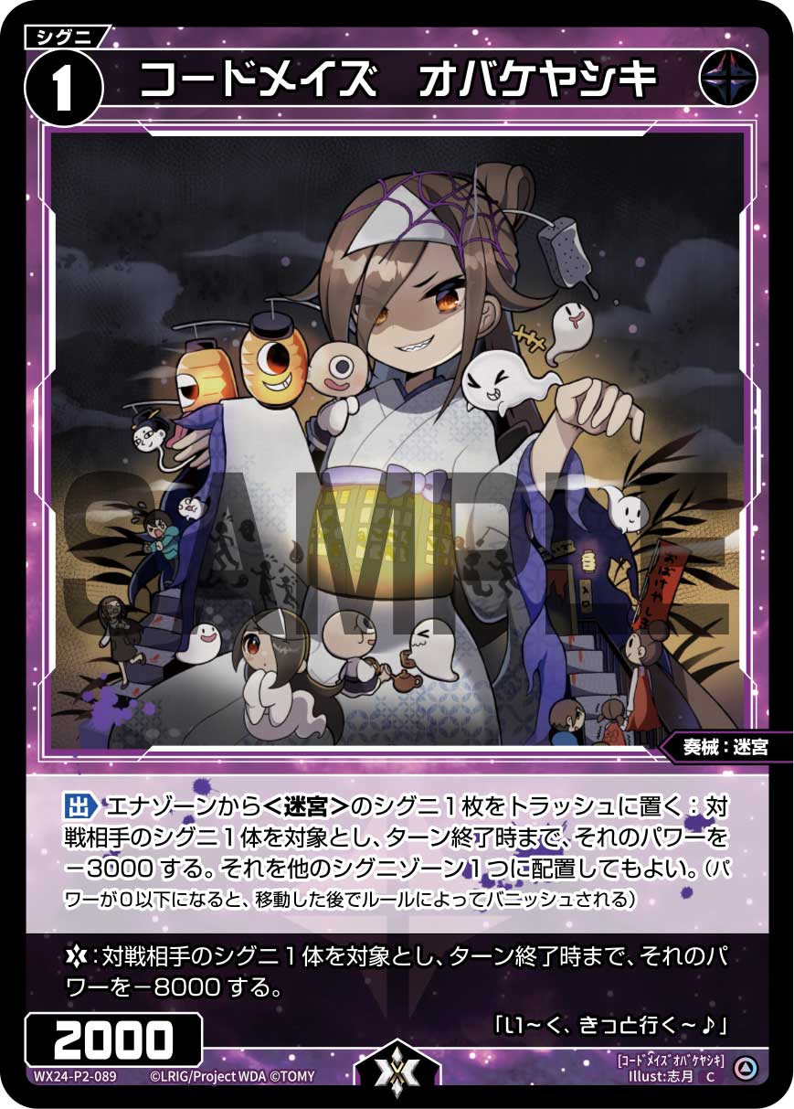 次に《コードメイズ オバケヤシキ》の出現時能力で、さらにそのシグニを-3000した結果パワーが0になりました。