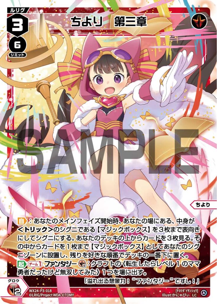 【自】:あなたのメインフェイズ開始時、あなたの場にある、中身が<トリック>のシグニである【マジックボックス】を3枚まで表向きにしてシグニにする。