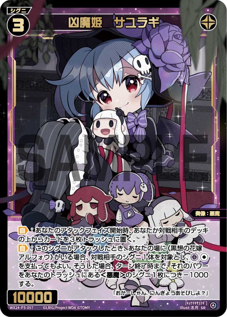 そうした場合、ターン終了時まで、それのパワーをあなたのトラッシュにある<悪魔>のシグニ1枚につき-1000する。