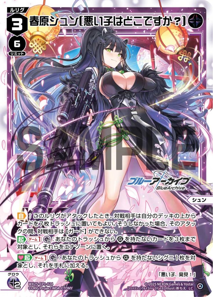 【自】:このルリグがアタックしたとき、対戦相手は自分のデッキの上からカードを7枚トラッシュに置いてもよい。