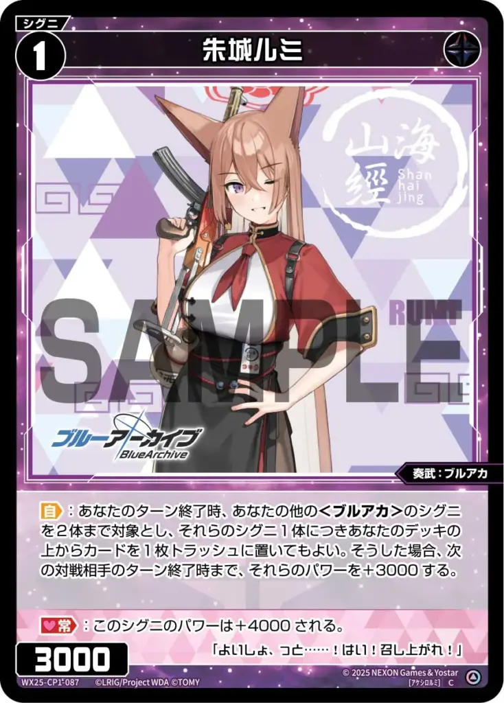 【自】:あなたのターン終了時、あなたの他の<ブルアカ>のシグニを2体まで対象とし、それらのシグニ1体につきあなたのデッキの上からカードを1枚トラッシュに置いてもよい。
