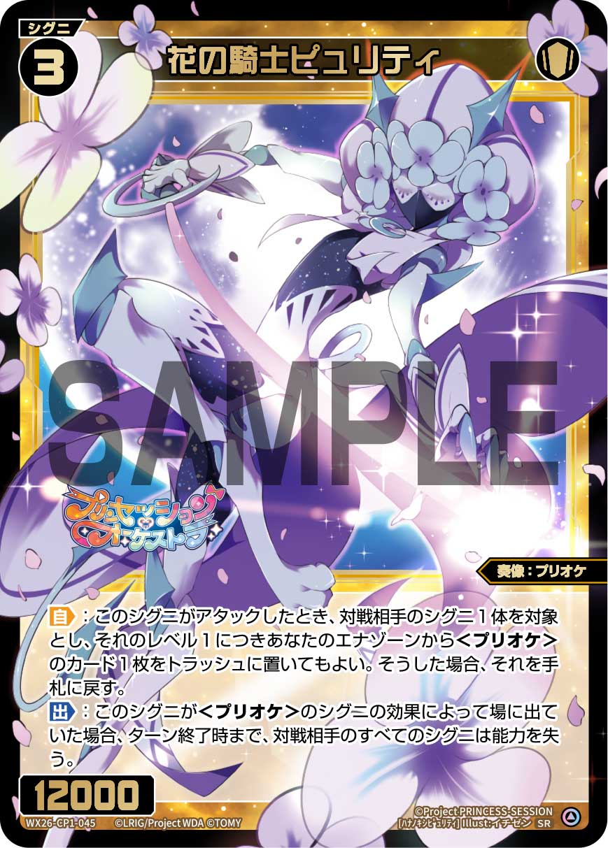 【自】:このシグニがアタックしたとき、対戦相手のシグニ1体を対象とし、それのレベル1につきあなたのエナゾーンから<プリオケ>のカード1枚をトラッシュに置いてもよい。