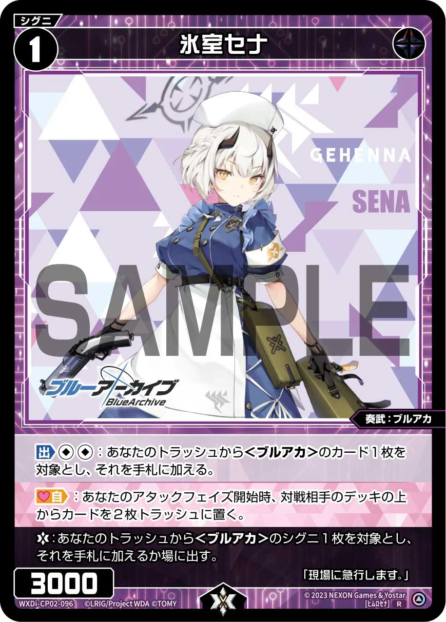 ライフバースト:あなたのトラッシュから<ブルアカ>のシグニ1枚を対象とし、それを手札に加えるか場に出す。
