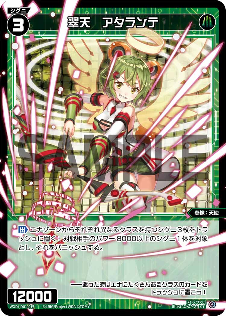 【出】エナゾーンからそれぞれ異なるクラスを持つシグニ3枚をトラッシュに置く:対戦相手のパワー8000以上のシグニ1体を対象とし、それをバニッシュする。