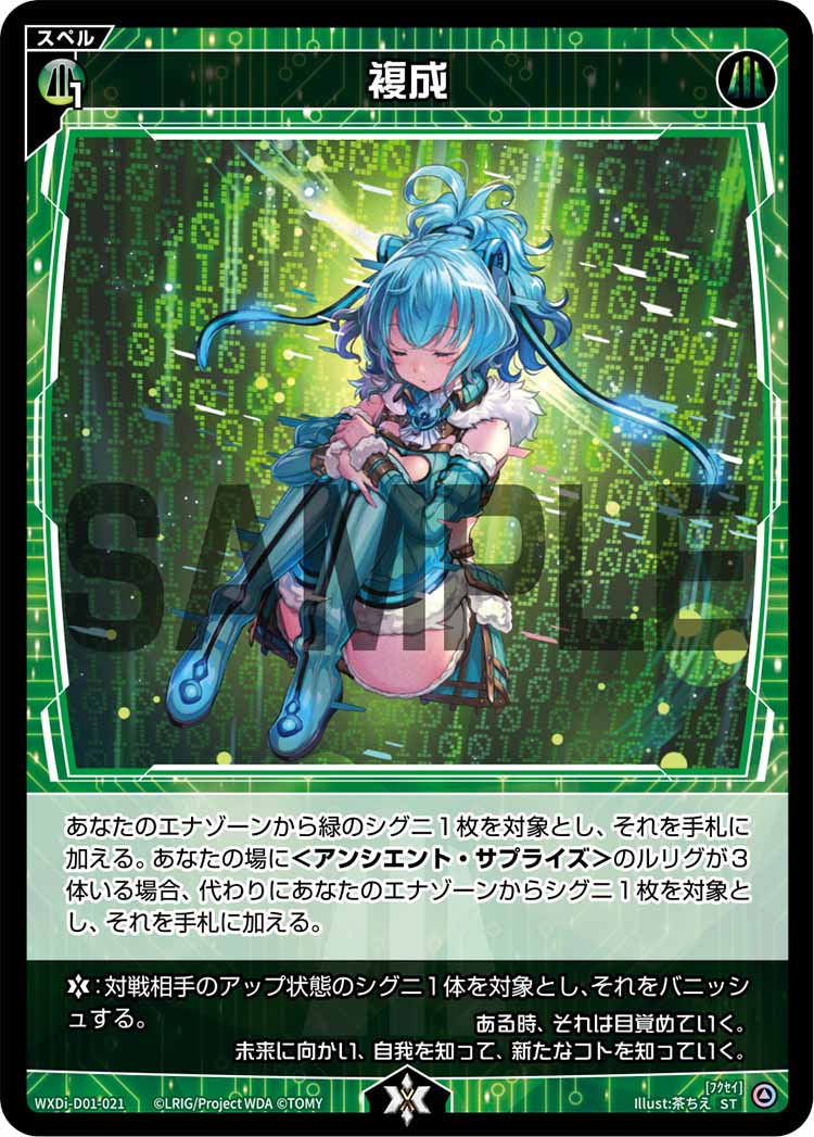 あなたのエナゾーンから緑のシグニ1枚を対象とし、それを手札に加える。