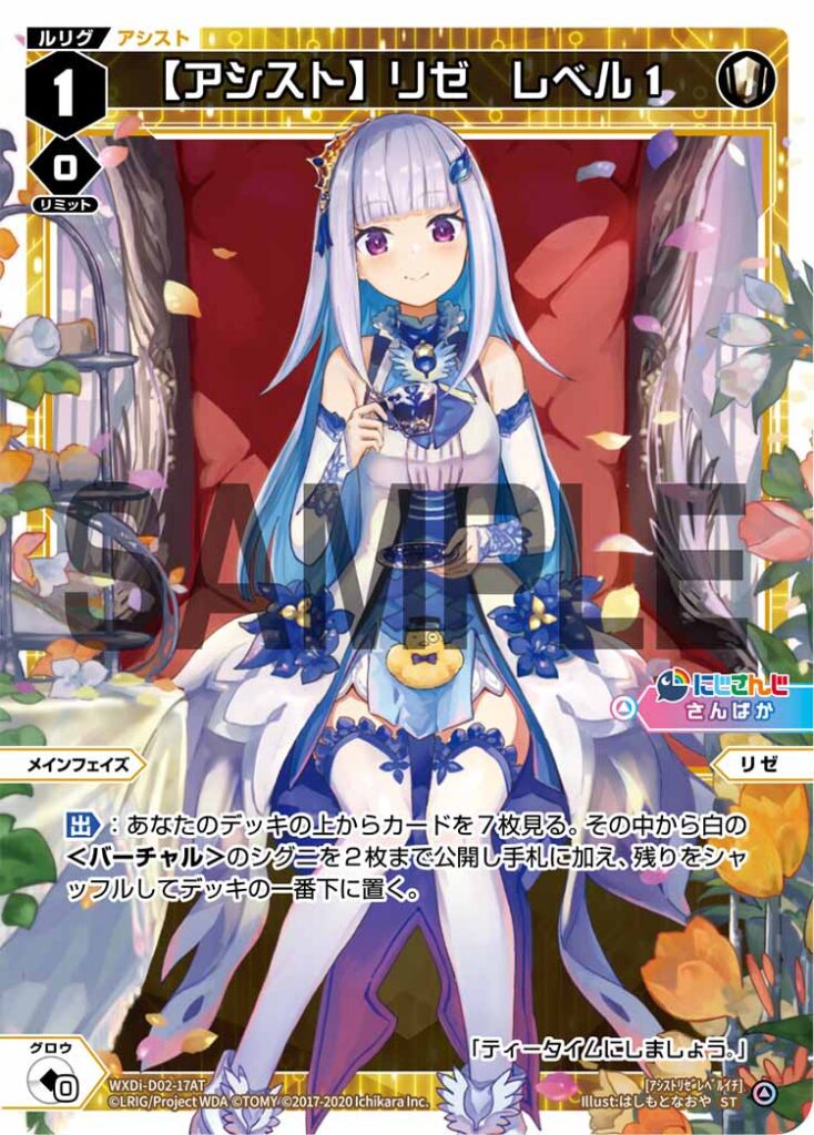 その中から白の<バーチャル>のシグニを2枚まで公開し手札に加え、残りをシャッフルしてデッキの一番下に置く。