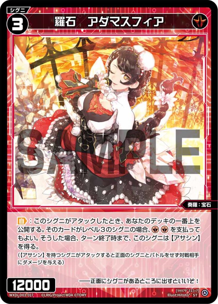 (【アサシン】を持つシグニがアタックすると正面のシグニとバトルをせず対戦相手にダメージを与える)