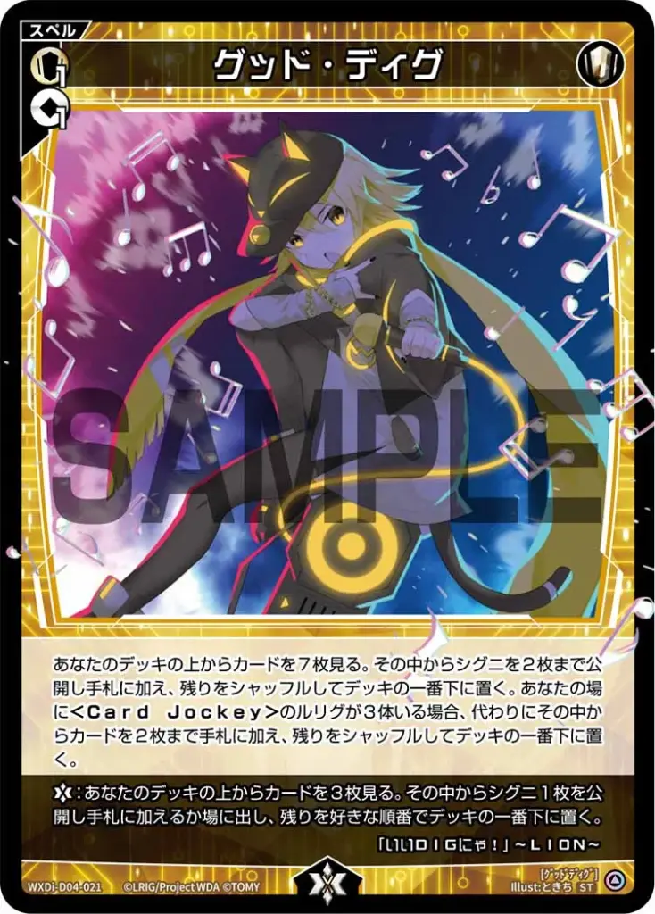 その中からシグニ1枚を公開し手札に加えるか場に出し、残りを好きな順番でデッキの一番下に置く。