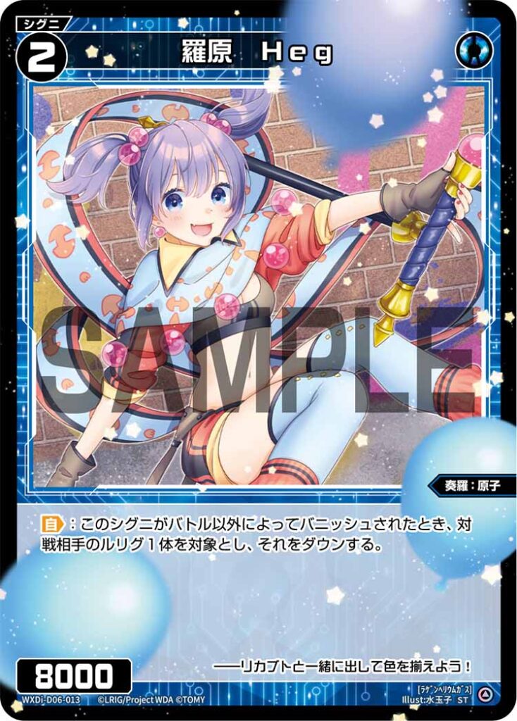 【自】:このシグニがバトル以外によってバニッシュされたとき、対戦相手のルリグ1体を対象とし、それをダウンする。