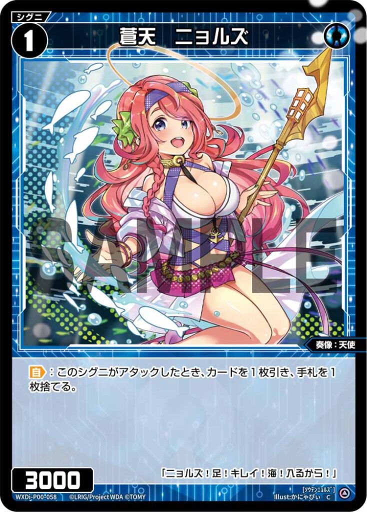 蒼天 ニョルズ シグニ 2025.12.04 WXDi-P00-058<ソウテンニョルズ> 【自】:このシグニがアタックしたとき、カードを1枚引き、手札を1枚捨てる。 Q&A Q:自動能力は強制ですか? A:はい、自動能力は条件を満たしたら強制で発動します。 引用元:公式サイト