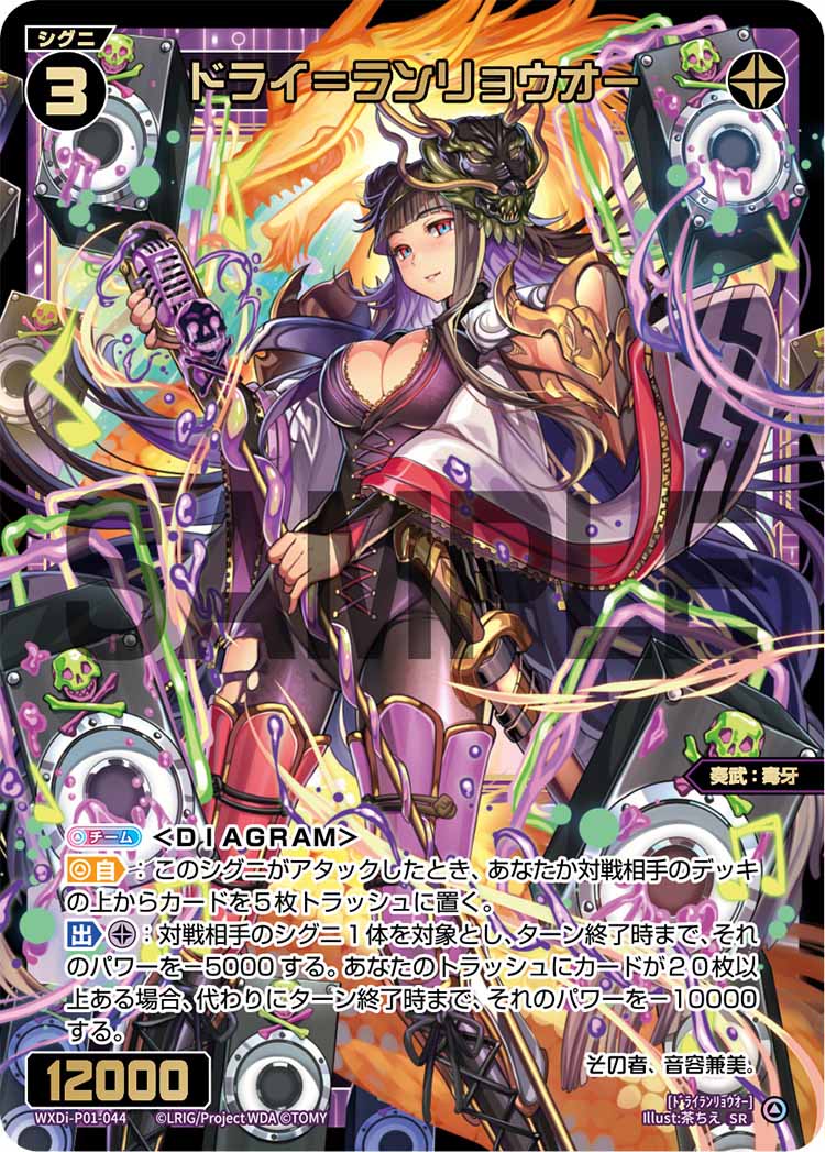 【チーム自】:このシグニがアタックしたとき、あなたか対戦相手のデッキの上からカードを5枚トラッシュに置く。