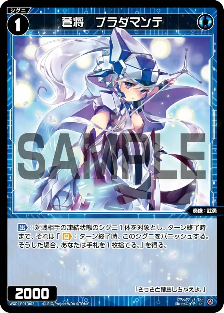 Q:相手の凍結状態の《羅原姫 H2O》を対象に、《蒼将 ブラダマンテ》で能力を付与しました。