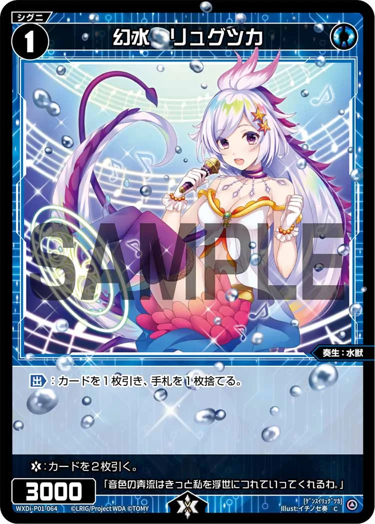 幻水 リュグツカ シグニ 2025.12.03 WXDi-P01-064<ゲンスイリュグツカ> 【出】:カードを1枚引き、手札を1枚捨てる。ライフバースト:カードを2枚引く。 Q&A Q:出現時能力は強制ですか? A:はい、コストのない出現時能力は強制で発動します。 引用元:公式サイト