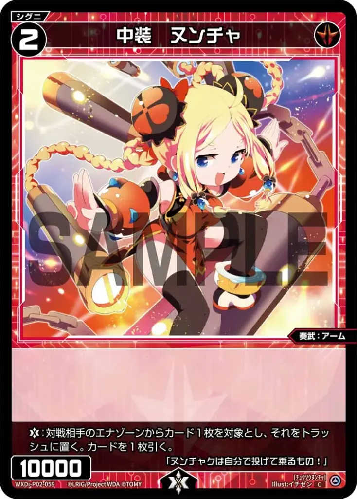 中装 ヌンチャ シグニ 2025.12.03 WXDi-P02-059<チュウソウヌンチャ> ライフバースト:対戦相手のエナゾーンからカード1枚を対象とし、それをトラッシュに置く。カードを1枚引く。 Q&A Q:対戦相手のエナゾーンにカードが1枚もない状況でこのシグニのライフバーストが発動しました。カードを1枚引けますか? A:はい、引けます。 引用元:公式サイト