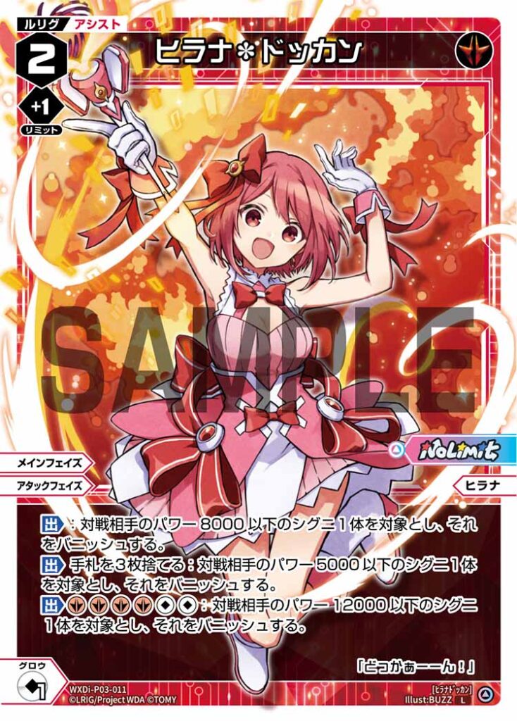 【出】《赤》《赤》《赤》《赤》《無》《無》:対戦相手のパワー12000以下のシグニ1体を対象とし、それをバニッシュする。