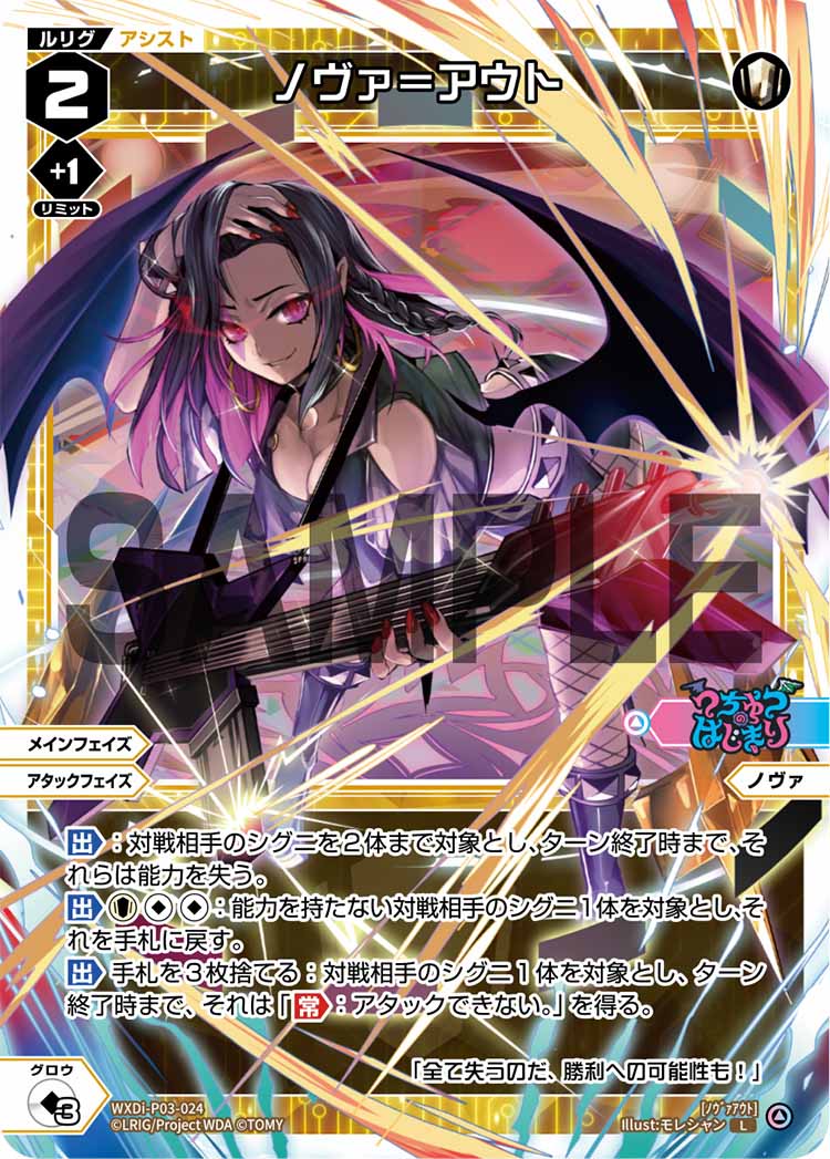【出】手札を3枚捨てる:対戦相手のシグニ1体を対象とし、ターン終了時まで、それは「【常】:アタックできない。」を得る。