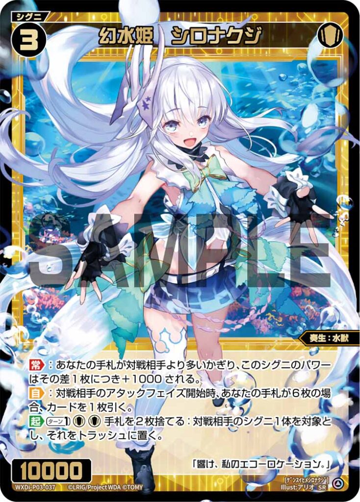 【常】:あなたの手札が対戦相手より多いかぎり、このシグニのパワーはその差1枚につき+1000される。