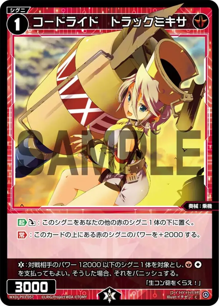 【起】《ダウン》:このシグニをあなたの他の赤のシグニ1体の下に置く。