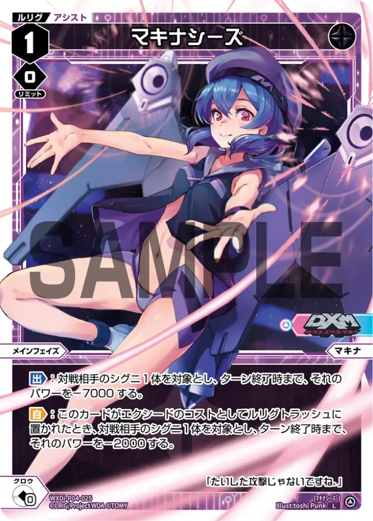 【自】:このカードがエクシードのコストとしてルリグトラッシュに置かれたとき、対戦相手のシグニ1体を対象とし、ターン終了時まで、それのパワーを-2000する。