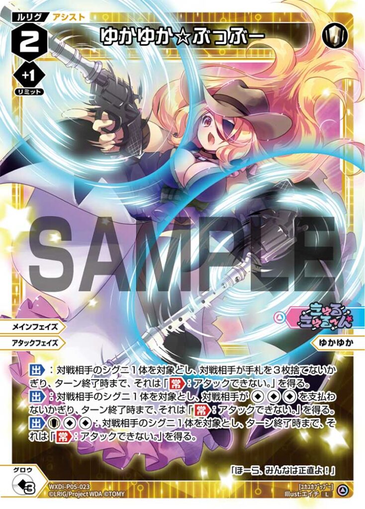 【出】:対戦相手のシグニ1体を対象とし、対戦相手が手札を3枚捨てないかぎり、ターン終了時まで、それは「【常】:アタックできない。」を得る。