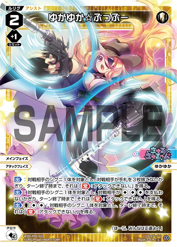 【出】《白》《無》《無》:対戦相手のシグニ1体を対象とし、ターン終了時まで、それは「【常】:アタックできない。」を得る。