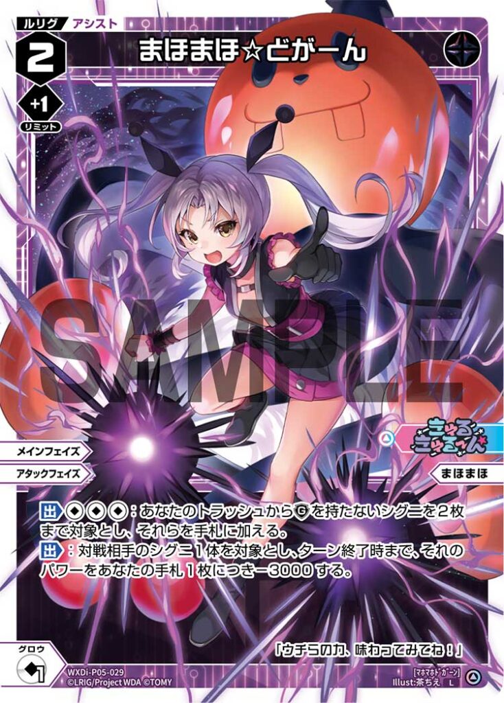 【出】:対戦相手のシグニ1体を対象とし、ターン終了時まで、それのパワーをあなたの手札1枚につき-3000する。