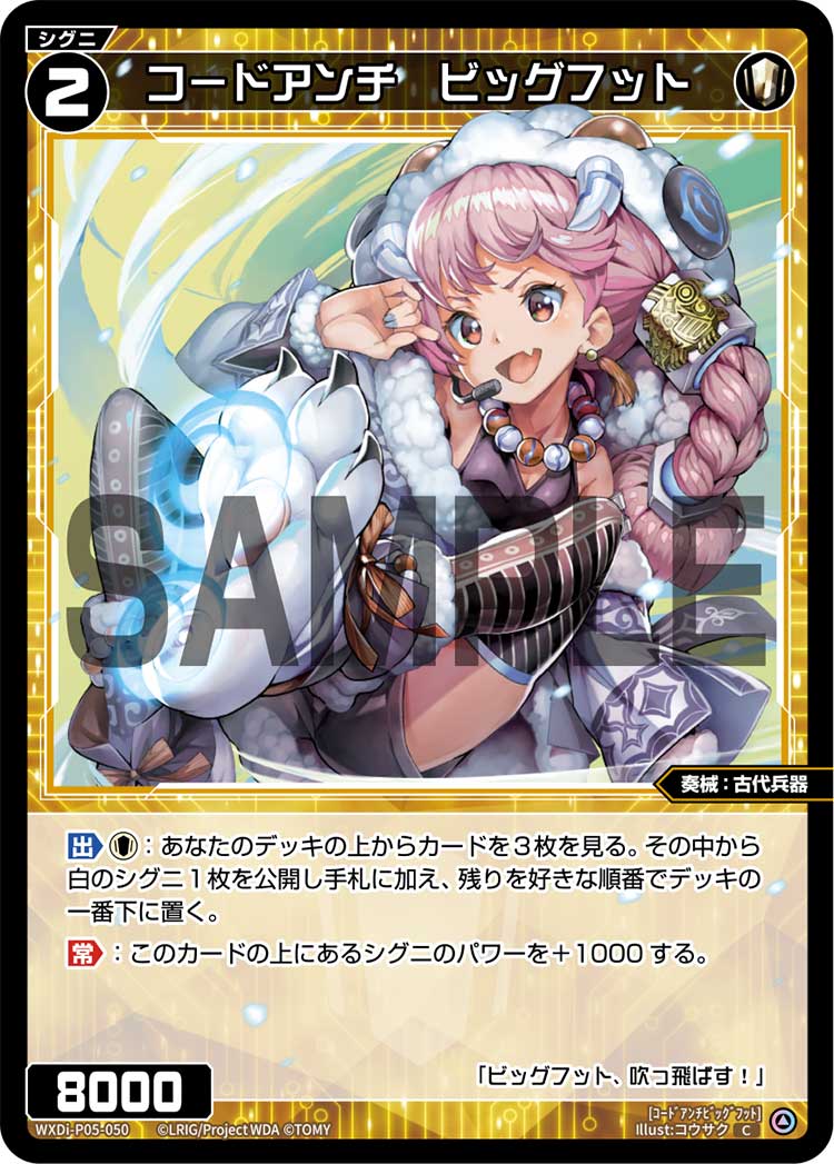 その中から白のシグニ1枚を公開し手札に加え、残りを好きな順番でデッキの一番下に置く。