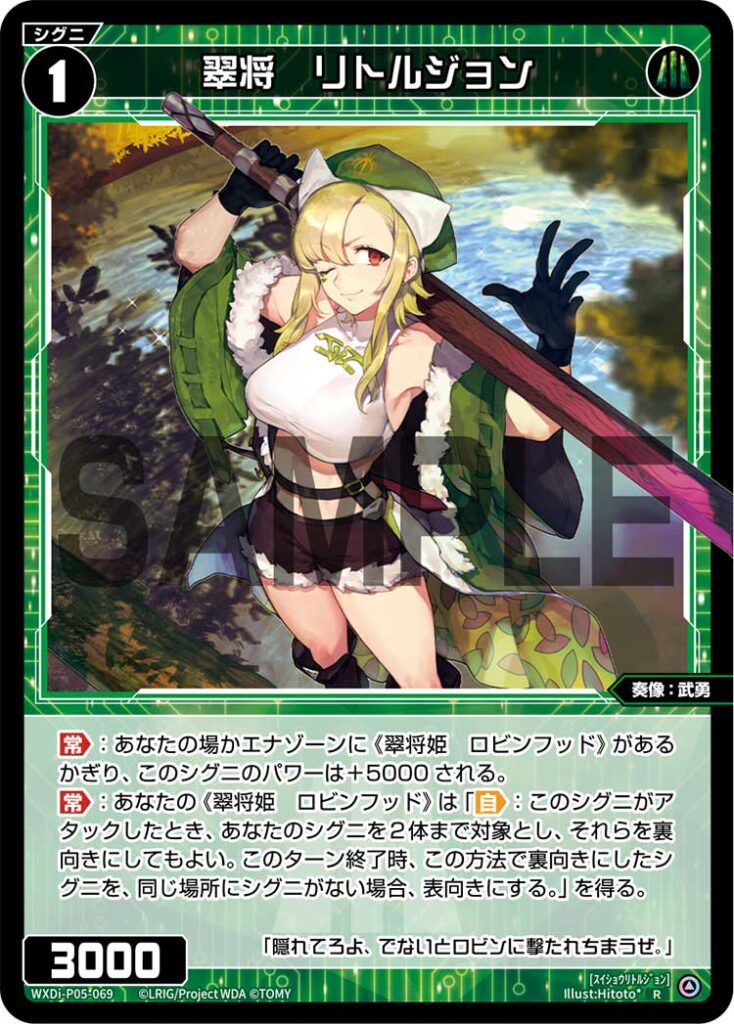 【常】:あなたの場かエナゾーンに《翠将姫 ロビンフッド》があるかぎり、このシグニのパワーは+5000される。