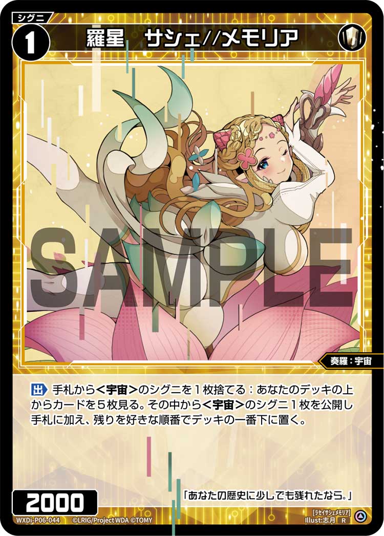 その中から<宇宙>のシグニ1枚を公開し手札に加え、残りを好きな順番でデッキの一番下に置く。