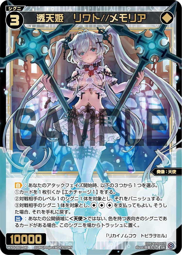 《透天姫 リワト//メモリア》は「天使以外のクラスであり、色を持つシグニ」がある場合にのみトラッシュに置きます。