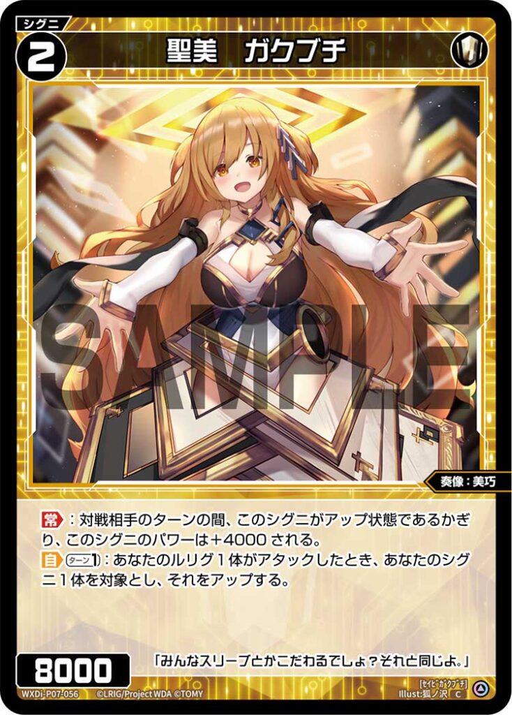 《聖美 ガクブチ》の自動能力はアップ状態のシグニを対象にすることができます。