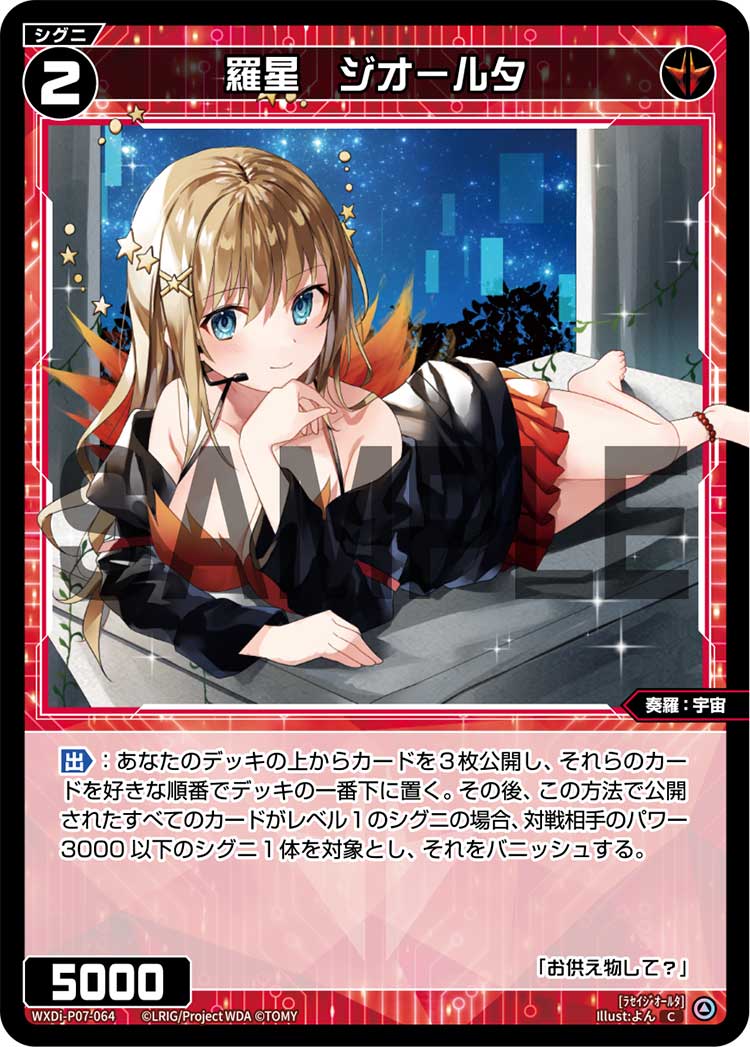 その後、この方法で公開されたすべてのカードがレベル1のシグニの場合、対戦相手のパワー3000以下のシグニ1体を対象とし、それをバニッシュする。