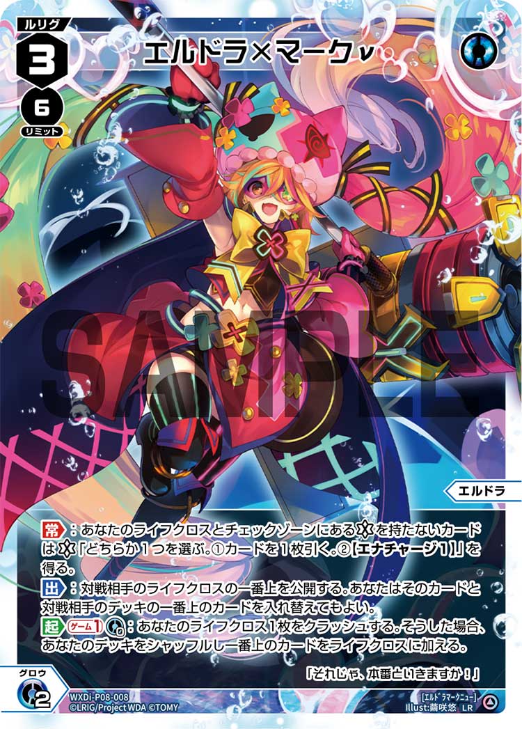 【常】:あなたのライフクロスとチェックゾーンにある【ライフバースト】を持たないカードは【ライフバースト】「どちらか1つを選ぶ。①カードを1枚引く。②【エナチャージ1】」を得る。