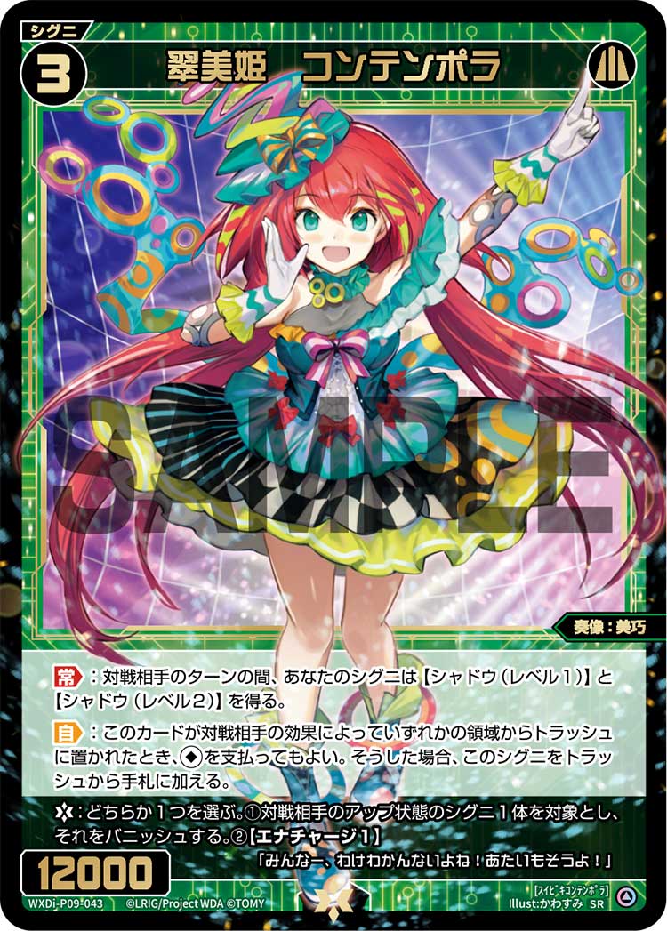 リフレッシュを行い、ライフクロスを1枚トラッシュに置いた際、そのカードが《翠美姫 コンテンポラ》でした。