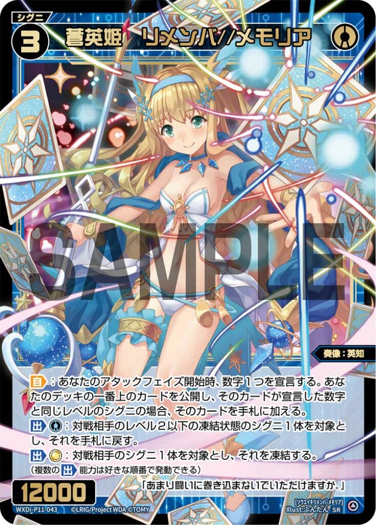 【出】《青》:対戦相手のレベル2以下の凍結状態のシグニ1体を対象とし、それを手札に戻す。