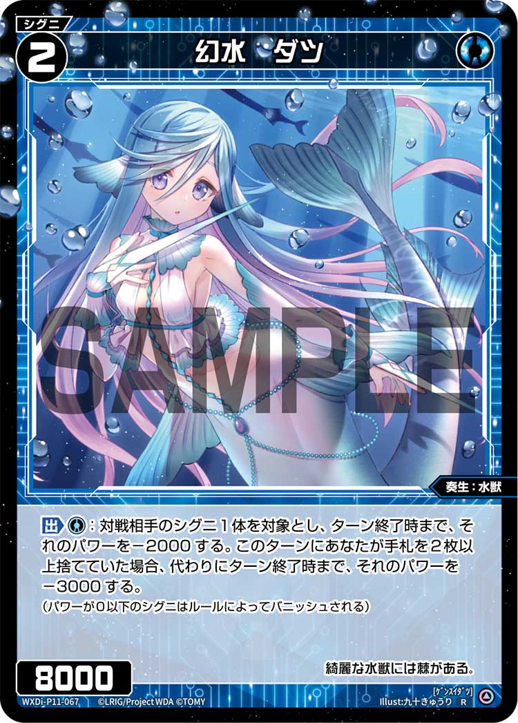 【出】《青》:対戦相手のシグニ1体を対象とし、ターン終了時まで、それのパワーを-2000する。