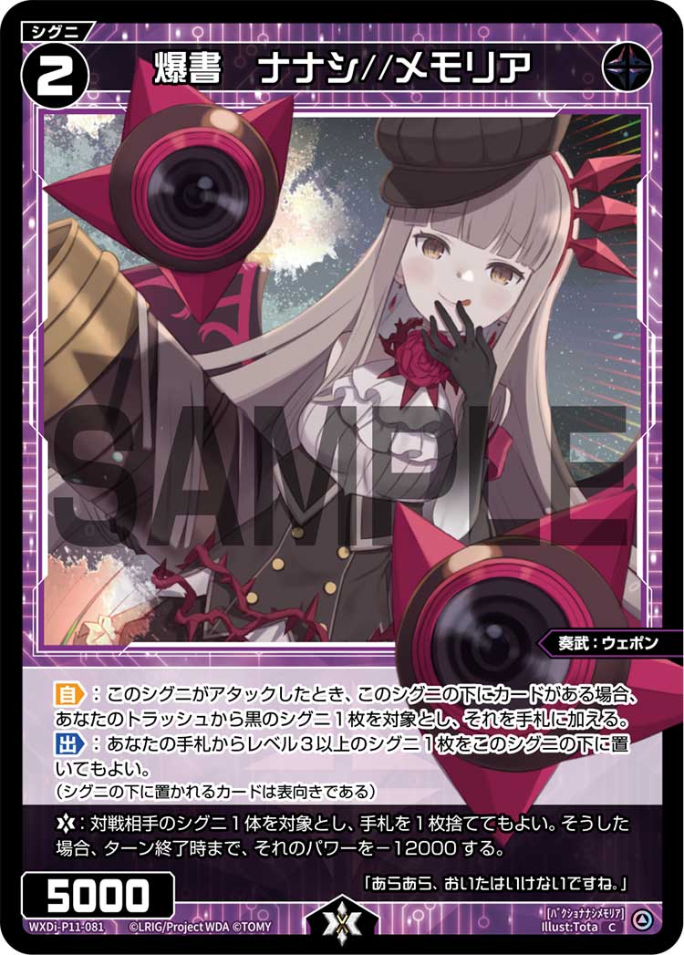 【自】:このシグニがアタックしたとき、このシグニの下にカードがある場合、あなたのトラッシュから黒のシグニ1枚を対象とし、それを手札に加える。