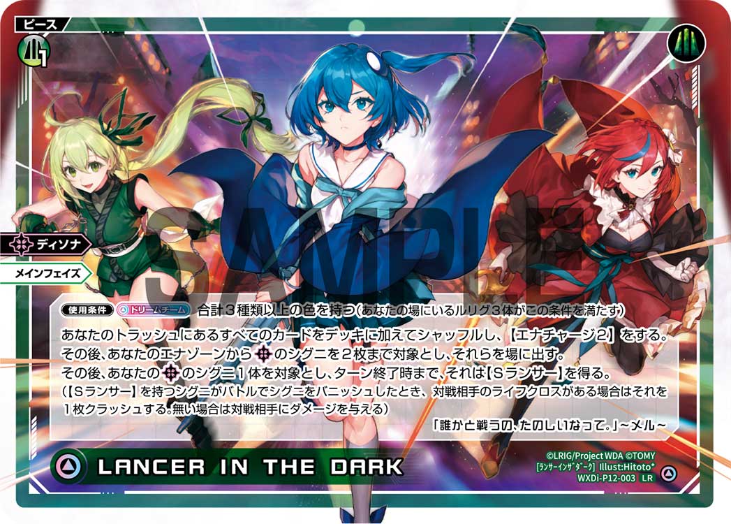 【使用条件】【ドリームチーム】合計3種類以上の色を持つ(あなたの場にいるルリグ3体がこの条件を満たす)