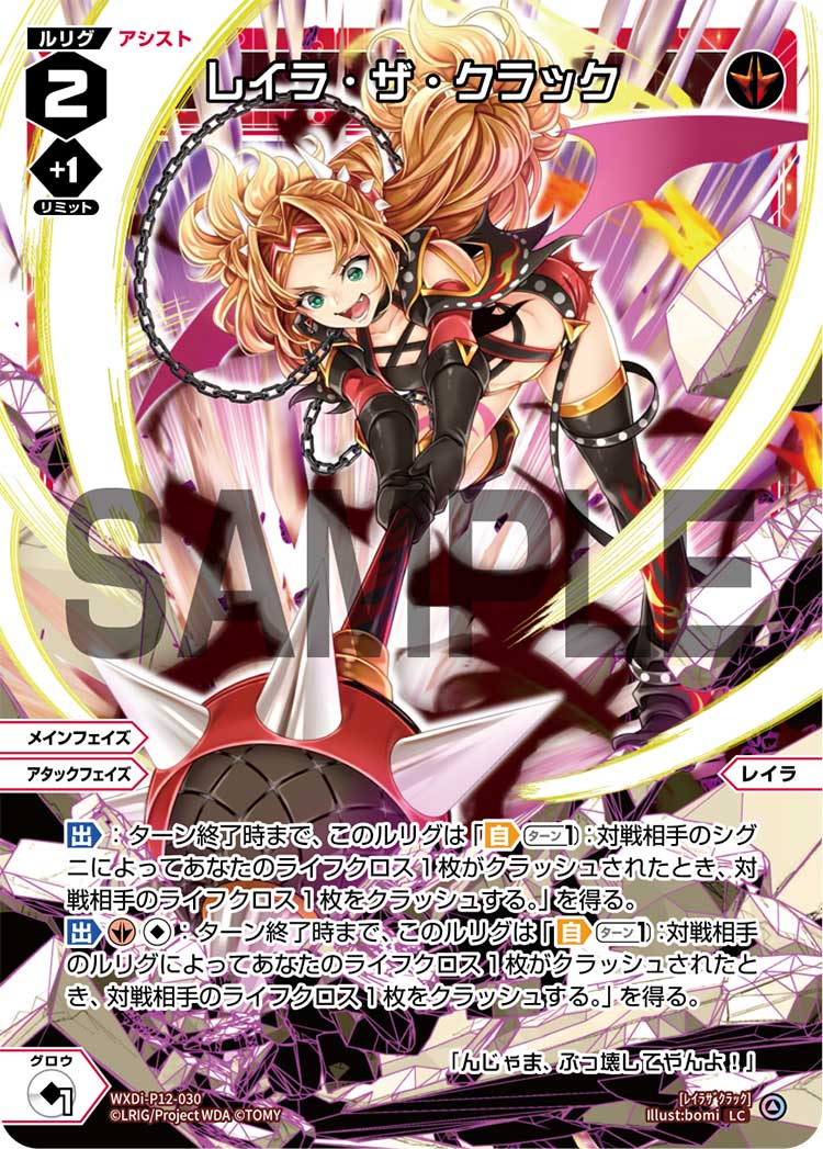 【出】《赤》《無》:ターン終了時まで、このルリグは「【自】《ターン1回》:対戦相手のルリグによってあなたのライフクロス1枚がクラッシュされたとき、対戦相手のライフクロス1枚をクラッシュする。」を得る。