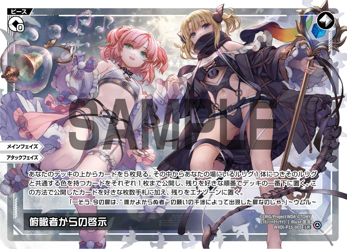 その中からあなたの場にいるルリグ1体につきそのルリグと共通する色を持つカードをそれぞれ1枚まで公開し、残りを好きな順番でデッキの一番下に置く。