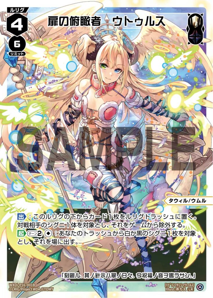 また、このピースの使用条件(白か黒のルリグ1体以上)をアシストルリグで満たせるのであれば、レベル3の青の<ウムル>から《NEXT GATE》を使用して《扉の俯瞰者 ウトゥルス》にグロウすることができます。