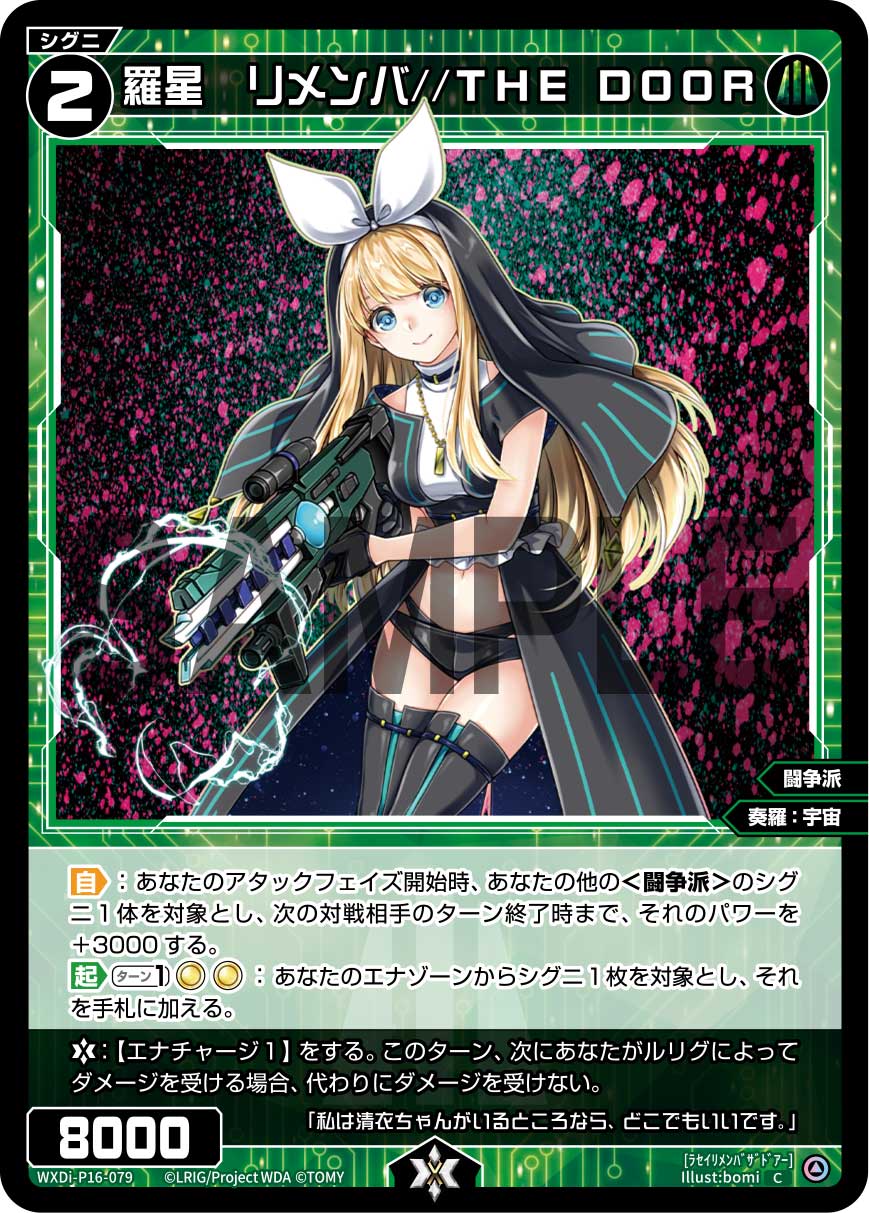 【自】:あなたのアタックフェイズ開始時、あなたの他の<闘争派>のシグニ1体を対象とし、次の対戦相手のターン終了時まで、それのパワーを+3000する。